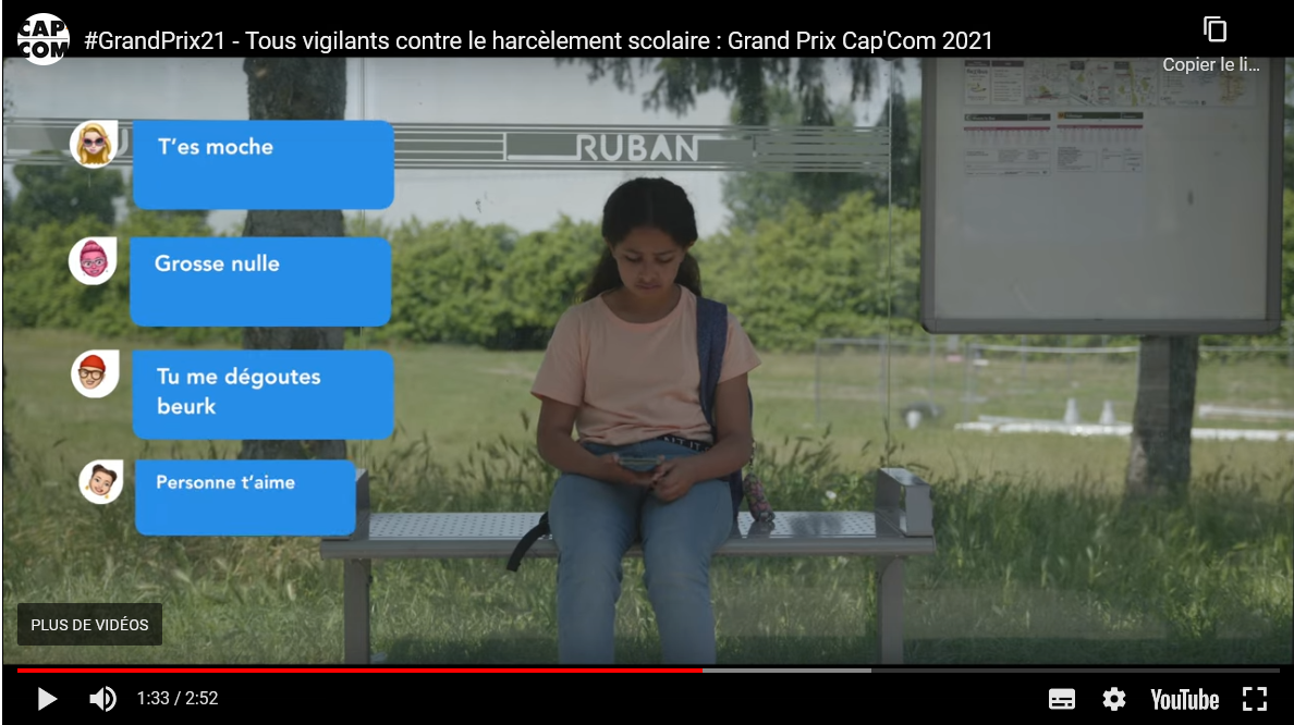 Réalisée par le Conseil Municipal des Jeunes élus de la ville (CMJ), cette vidéo a pour objectif de changer le regard des jeunes face au harcèlement. Elle raconte le quotidien d’une jeune fille qui tout au long de journée va subir une serie de micro-agressions. Toutes ces petits affrontements, mis bout à bout, vont s’immiscer au plus profond d’elle jusqu’à la mener au plus grave, le suicide. Le reste de la vidéo montre dans une courte rétrospective comment il est possible à d’agir l’échelle individuelle afin d’éviter pire. Le but est de rendre les élèves des collèges acteurs de la lutte contre le harcèlement.